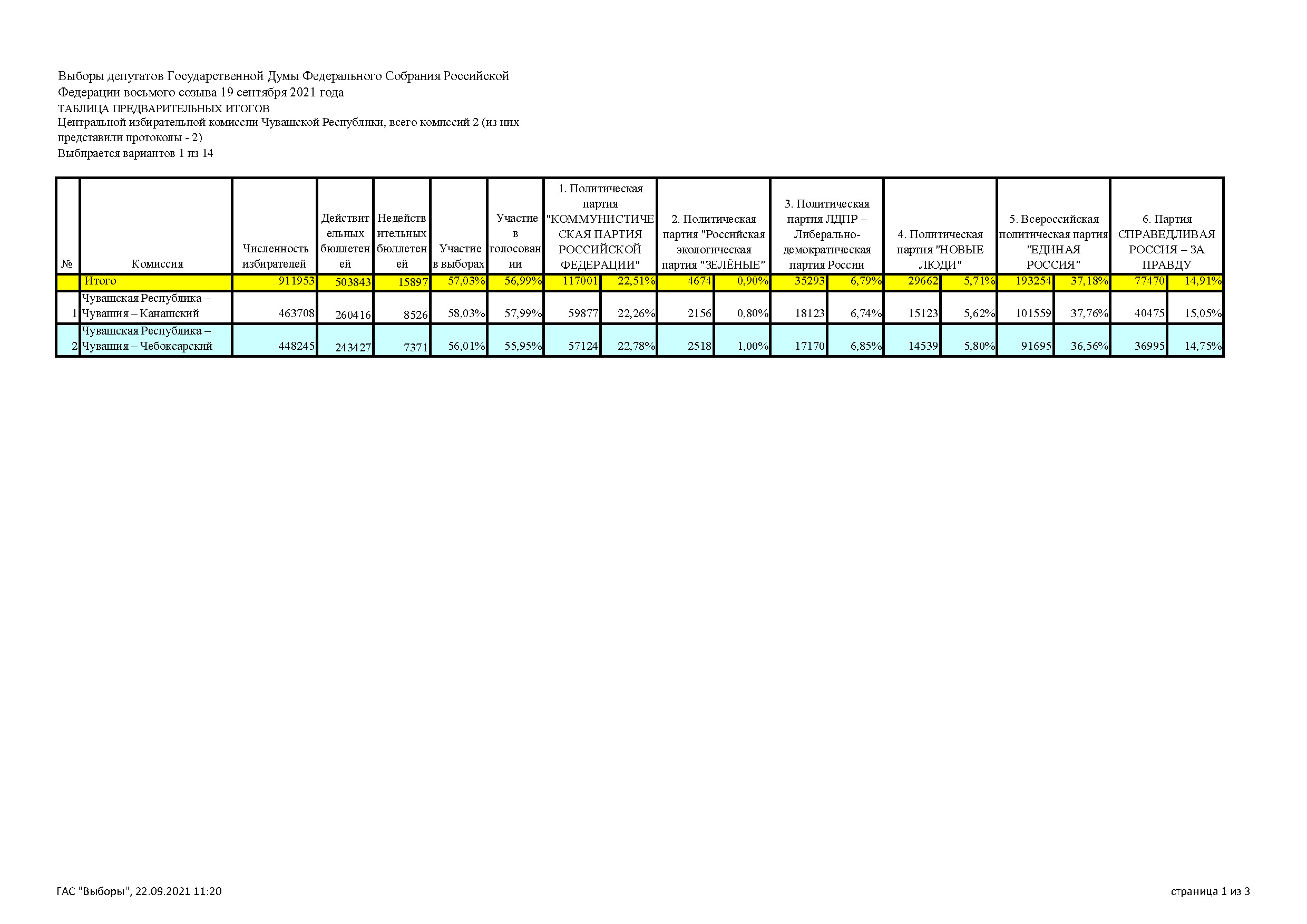 Выборы депутатов Госдумы РФ восьмого созыва 19 сентября 2021 года. Итоги голосования в Чувашии