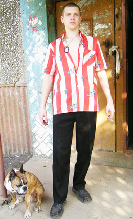 — Да их в прошлом году все лето таскал (улыбается. — Прим. авт.), а если серьезно… Во-первых, главное — не как одет, главное — что делаю. Во-вторых, я не какой-нибудь 15-летний пацан, чтоб таскать “трубы”. Меня уже давно не интересует одежда из магазина “Контрабанда”. Для настоящего рэпера шмотки не главное, запомните это. Выделяться надо музыкой. Поэтому я лучше пойду и на рынке оденусь.